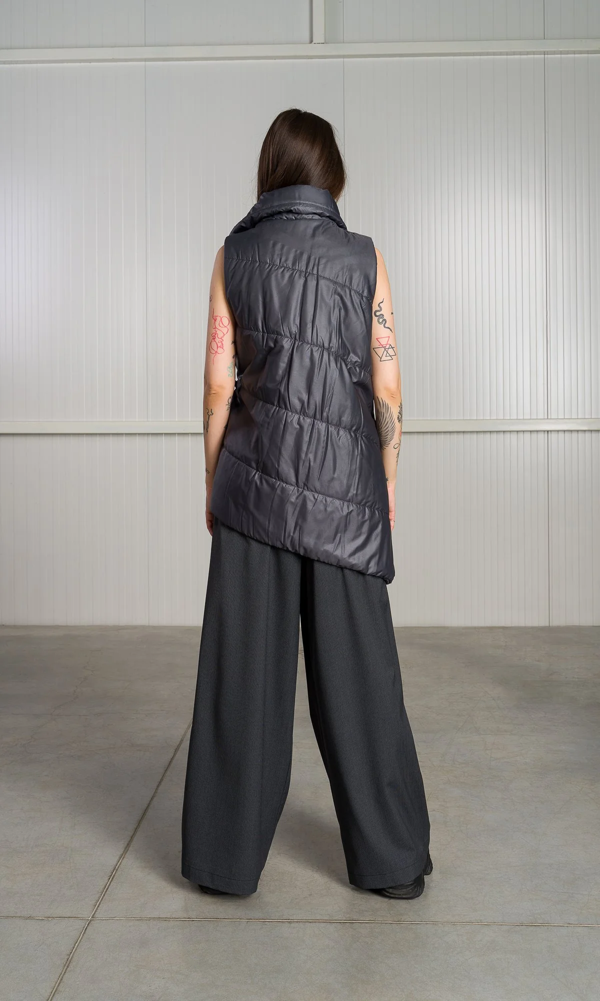 A statement piece designed to capture attention and exude contemporary charm. The standout features of this vest are its asymmetric design, high collar and side ribbon closure. Incredibly versatile and perfect for layering.