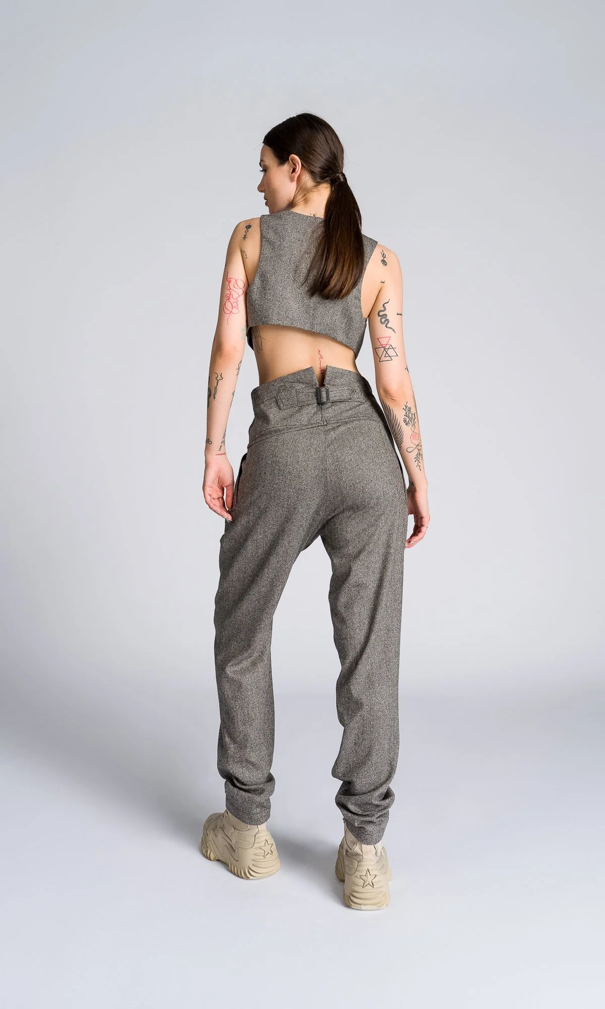 Cropped single-breasted vest that makes a lasting impression. A sleek and flattering silhouette that can be worn on its own, used as a layering piece over a dress or casually styled over a T-shirt. Made of 100% woolen fabric.
