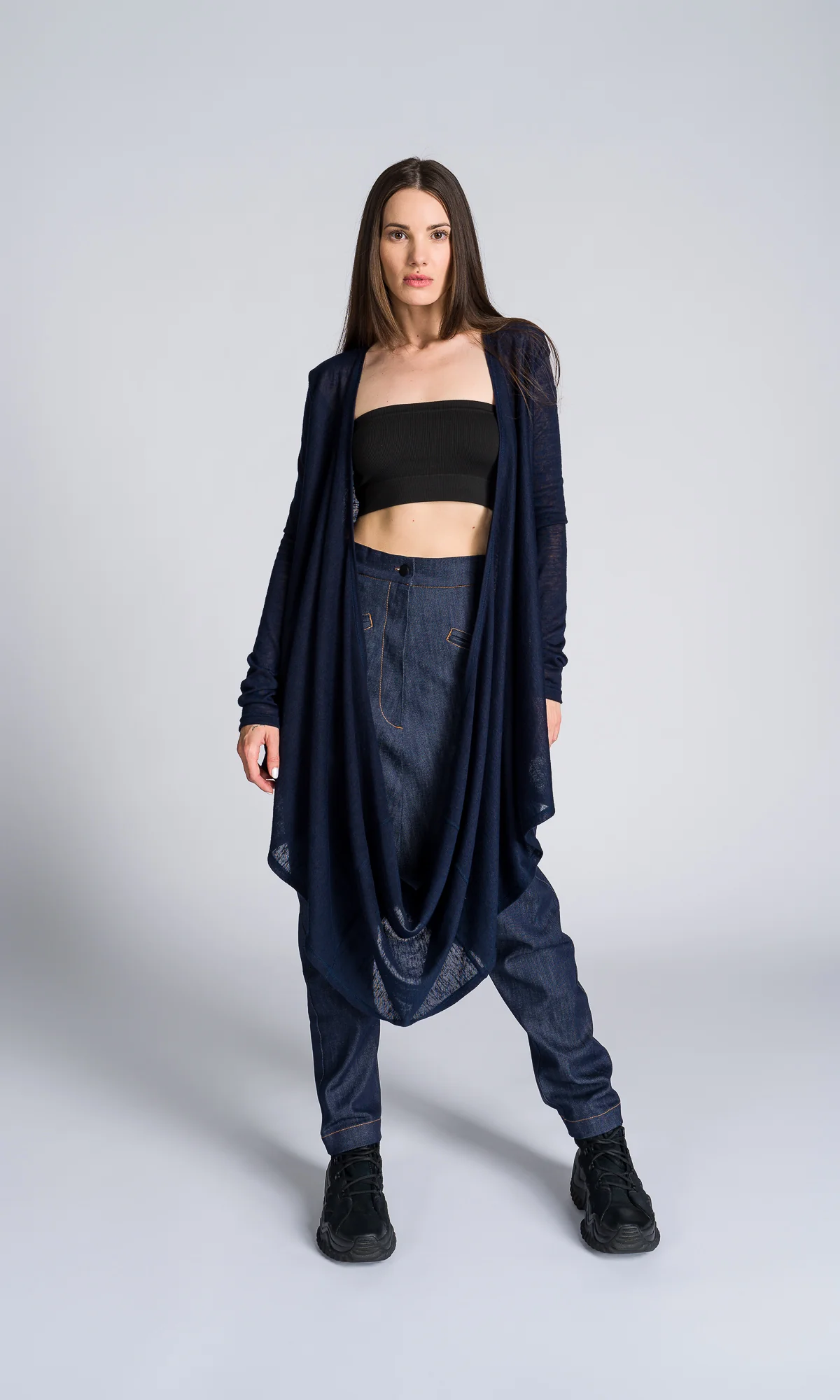 Long-sleeve Top with Long Draped Front