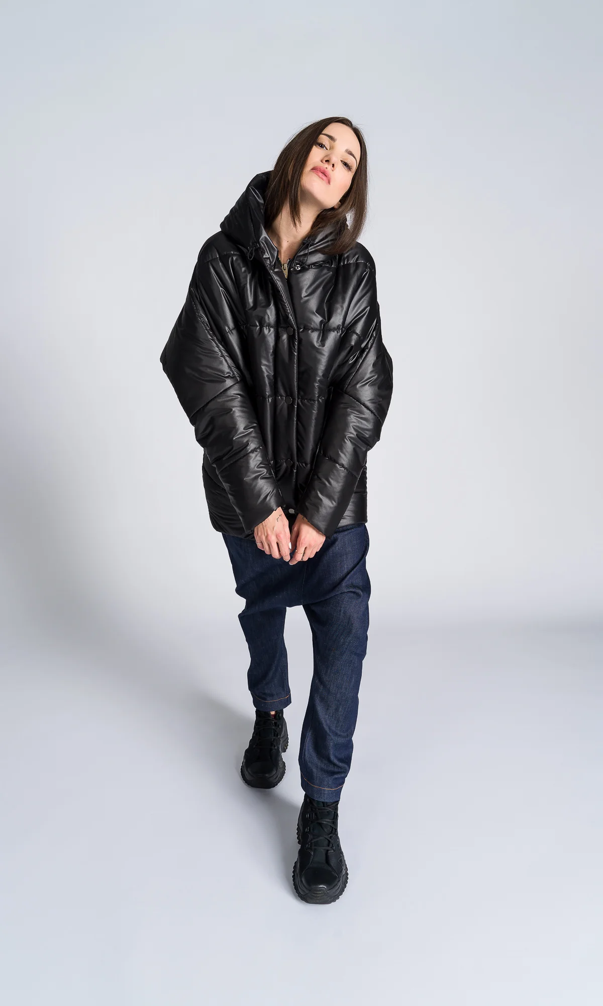 Hooded jacket with drop shoulder that has a relaxed fit while maintaining a sleek and sophisticated appearance. The silhouette flatters all body types and provides the freedom to layer comfortably. It's a versatile piece that effortlessly elevates both casual and semi-formal looks.