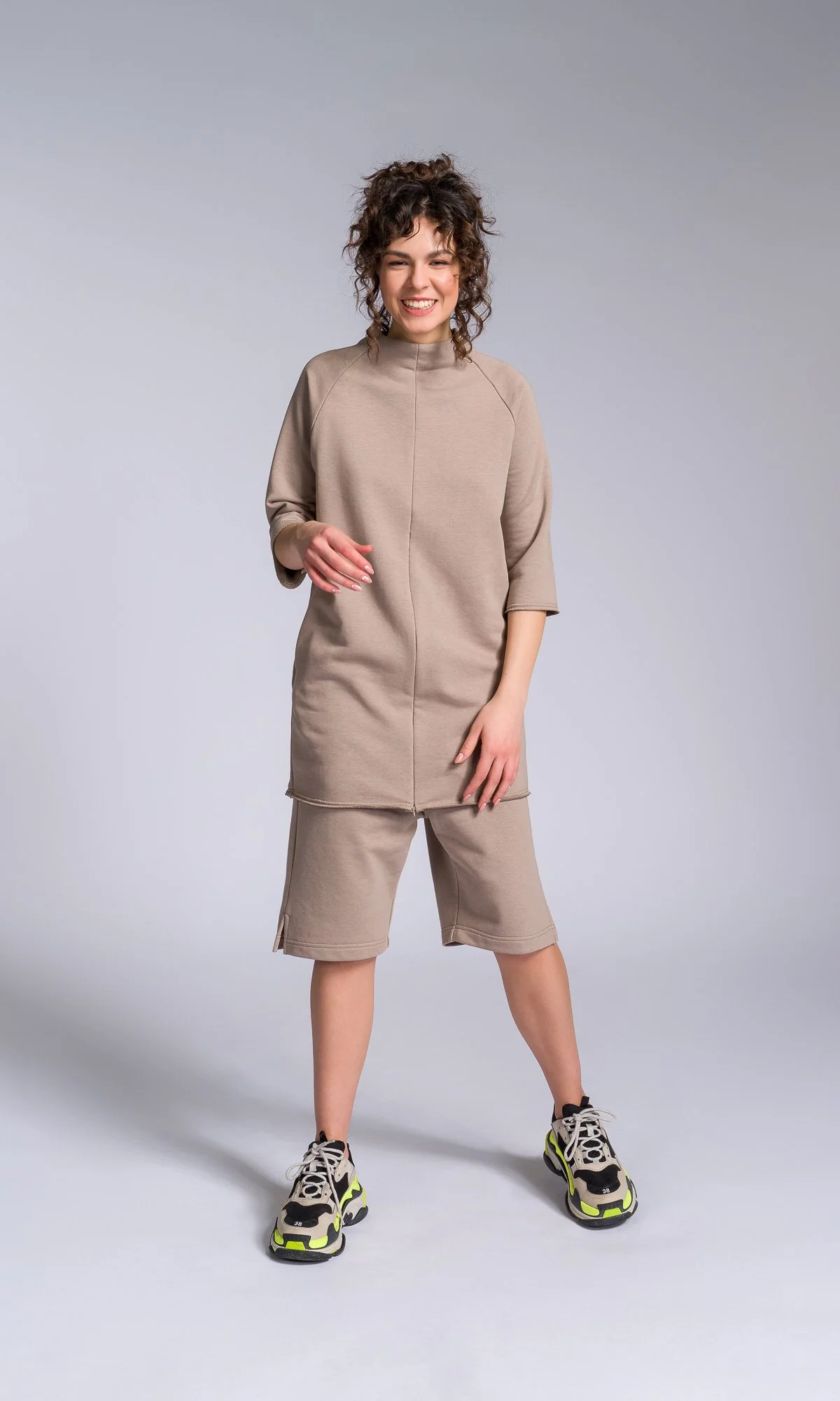 A perfect fusion of comfort and contemporary style. This tunic sweatshirt is designed to provide a relaxed fit while adding an edgy twist to your everyday wardrobe. Pair it with matching shorts, sweats or jeans.